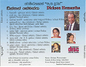 Dickson Hemantha is a talented singer who hails from Dehiwala and Moratuwa. He sang in 'Sarala Gee' programs and several other musical programs at the SLBC. He palyed the main role and singing in the stage play "Dittamangalika," written and directed by Rohana Senaratne and shown in Washington and New York. He is an active member of the Sri Lanka Ranga Kala Kavaya of Washington. He also sang duets with Malini Bulathsinhala at her "Senda Ahasa" show in Washington in March, 2001. He also did the playback singing for the stage play "Ranthetiya," drama written and directed by Chandrasinghe de Saram and shown in Washington. He has shared the hidden talents of Sri Lankan Washingtonians in making his remarkable debut - Sinhala music Cd - 'Etha duraka' with Sunilka Vitanage,Sriyani Senaratne and Himali Ruvangala.