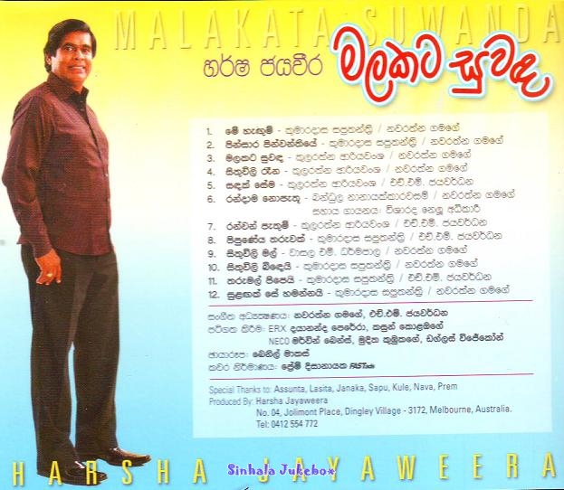 We are featuring 12 Original music tracks by Harsha Jayaweera from his debuting CD Malakata Suwandha.