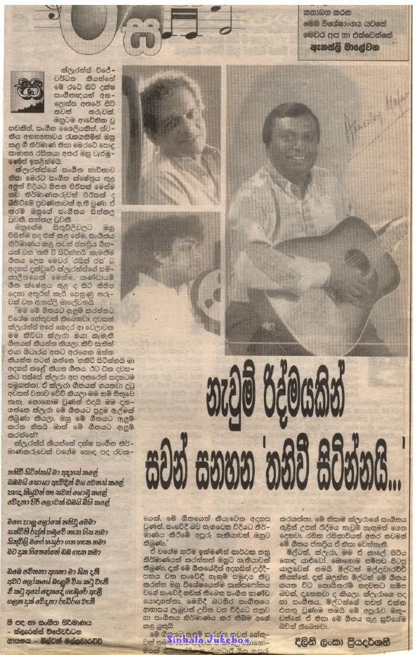 This is a service provided for Sri Lankan Music Fans for on-line listening only. Unauthorized uses of any kind, including |
