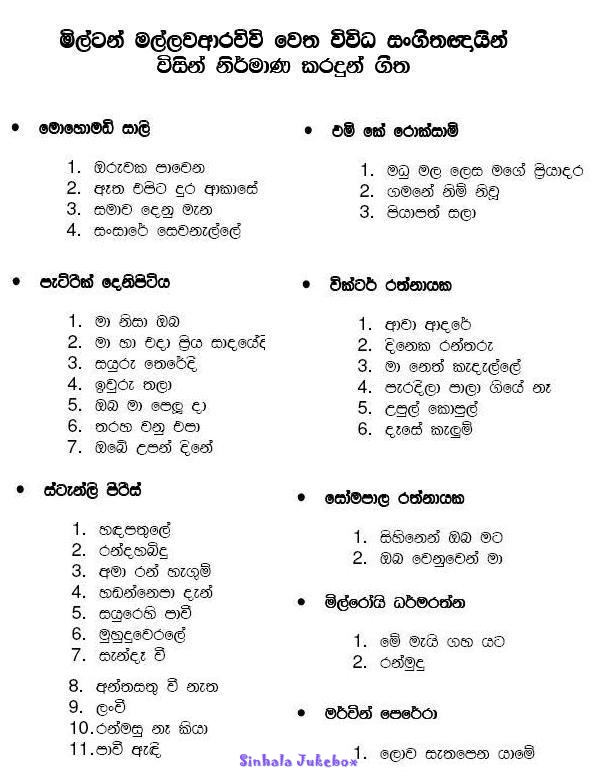 This is a service provided for Sri Lankan Music Fans for on-line listening only. Unauthorized uses of any kind, including |