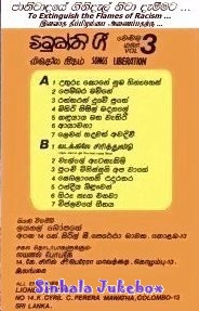 We are featuring three audio cassettes of Vimukthi Gee concert produced by the Society for Socialist Culture of Sri Lanka with permission and expressed request by the artists of the concert communicated via Mr. Lionel Bopage.