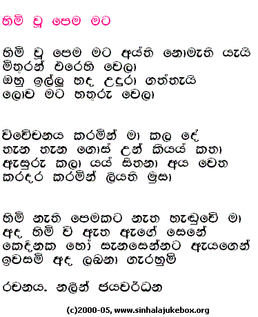 ©2000-2014, Sinhala Jukebox - A Jukebox of Songs from Sri Lanka.