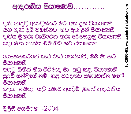 ©2000-2014, Sinhala Jukebox - A Jukebox of Songs from Sri Lanka.