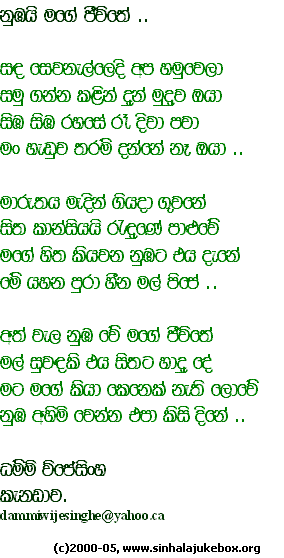 ©2000-2014, Sinhala Jukebox - A Jukebox of Songs from Sri Lanka.