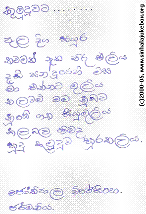 ©2000-2014, Sinhala Jukebox - A Jukebox of Songs from Sri Lanka.