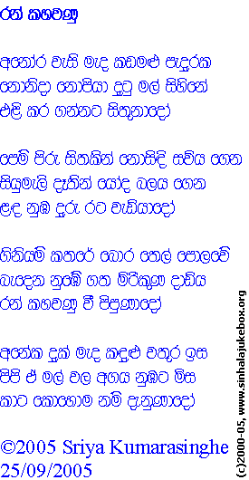 ©2000-2014, Sinhala Jukebox - A Jukebox of Songs from Sri Lanka.