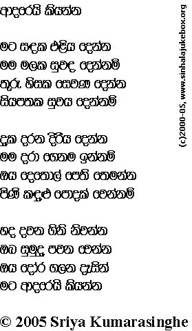 ©2000-2014, Sinhala Jukebox - A Jukebox of Songs from Sri Lanka.