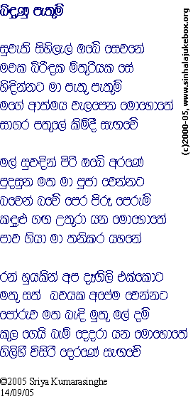 ©2000-2014, Sinhala Jukebox - A Jukebox of Songs from Sri Lanka.