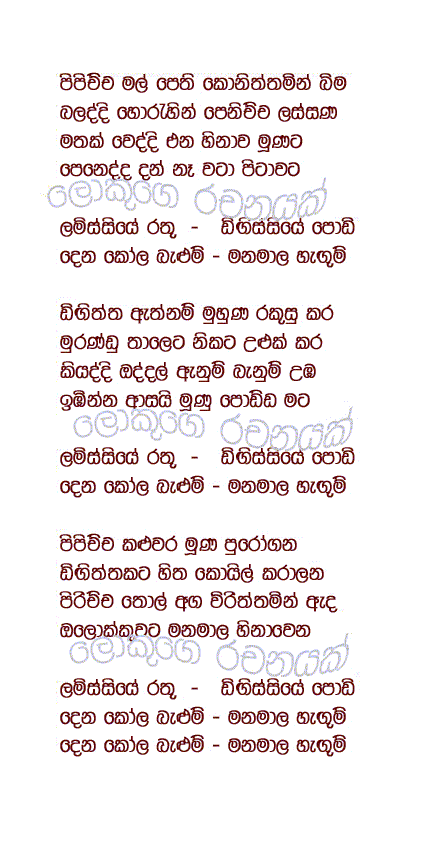 You are hereby invited to submit "Geetha Katha" for possible publication in this page. We reserve the rights to choose what will be presented, yet submitter is responsible for the content and not the page maintainers. We welcome all forms of creative work including but not limited to short stories, jokes, poems, and satire either in Sinhala and/or English.