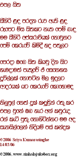 ©2000-2014, Sinhala Jukebox - A Jukebox of Songs from Sri Lanka.