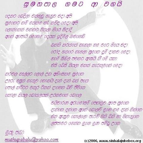 You are hereby invited to submit "Geetha Katha" for possible publication in this page. We reserve the rights to choose what will be presented, yet submitter is responsible for the content and not the page maintainers. We welcome all forms of creative work including but not limited to short stories, jokes, poems, and satire either in Sinhala and/or English.