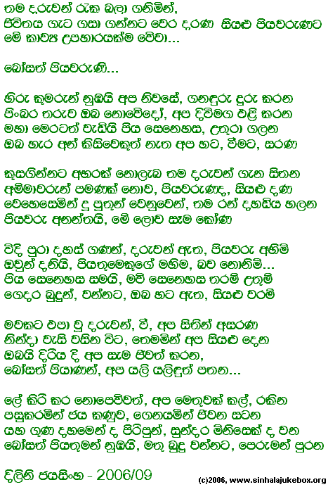 ©2000-2014, Sinhala Jukebox - A Jukebox of Songs from Sri Lanka.