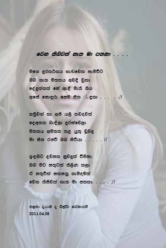 You are hereby invited to submit "Geetha Katha" for possible publication in this page. We reserve the rights to choose what will be presented, yet submitter is responsible for the content and not the page maintainers. We welcome all forms of creative work including but not limited to short stories, jokes, poems, and satire either in Sinhala and/or English.