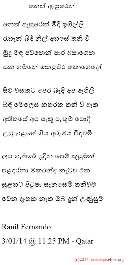 You are hereby invited to submit "Geetha Katha" for possible publication in this page. We reserve the rights to choose what will be presented, yet submitter is responsible for the content and not the page maintainers. We welcome all forms of creative work including but not limited to short stories, jokes, poems, and satire either in Sinhala and/or English.